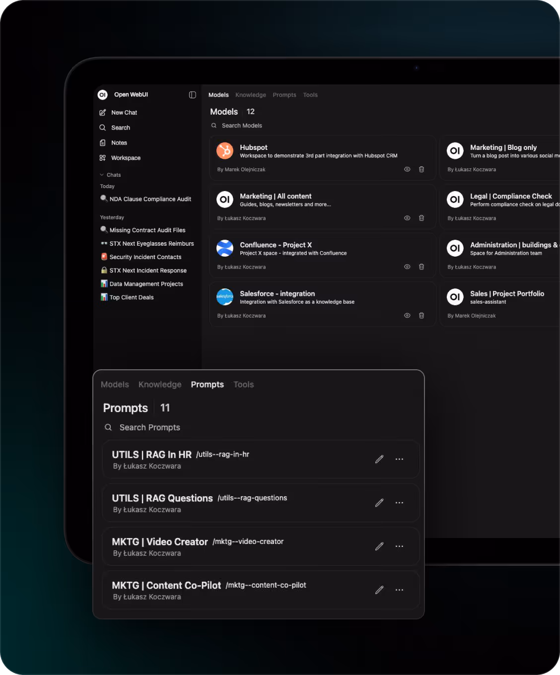 Agentic AI Workspace built by STX Next is a private, enterprise-grade agentic AI workspace built on n8n, which allows AI agents to orchestrate real workflows across your tools and data. Instead of isolated prompts, it connects knowledge retrieval with automation, execution, and governance, all while keeping data inside your infrastructure.